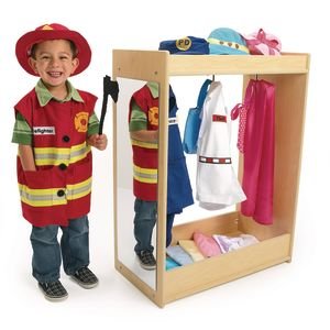 Drama centre is set up during free time play or centre time activities. It is a play area where children can use their imagination, interact with other children and express themselves. The drama center has different costumes, and children decide what they want to be during the playtime. They can be doctors, nurses, cashiers in a grocery store, community helpers like a policeman, firefighter, teacher in a classroom etc. The drama center helps children use their imagination skills, develop creative skills, language skills, communication/social skills, decision-making and negotiation skills in a group.